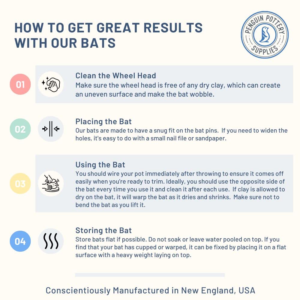 - CONSCIENTIOUSLY MANUFACTURED IN THE USA - We take pride in our commitment to the environment. All our pottery wheel bat, including our pottery bat system, is made from high-quality Medex MDF. Each bat and bat system is carefully handmade in Vermont, ensuring the highest quality and attention to detail.