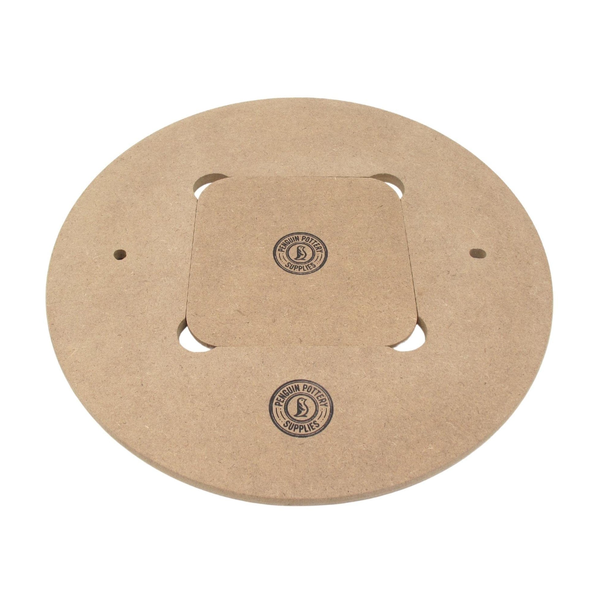 Penguin Pottery's Medex pottery wheel bats are made of wood without formaldehyde. Bats are pre-drilled with bat pin holes 10" apart. Will fit all standard wheel heads.
