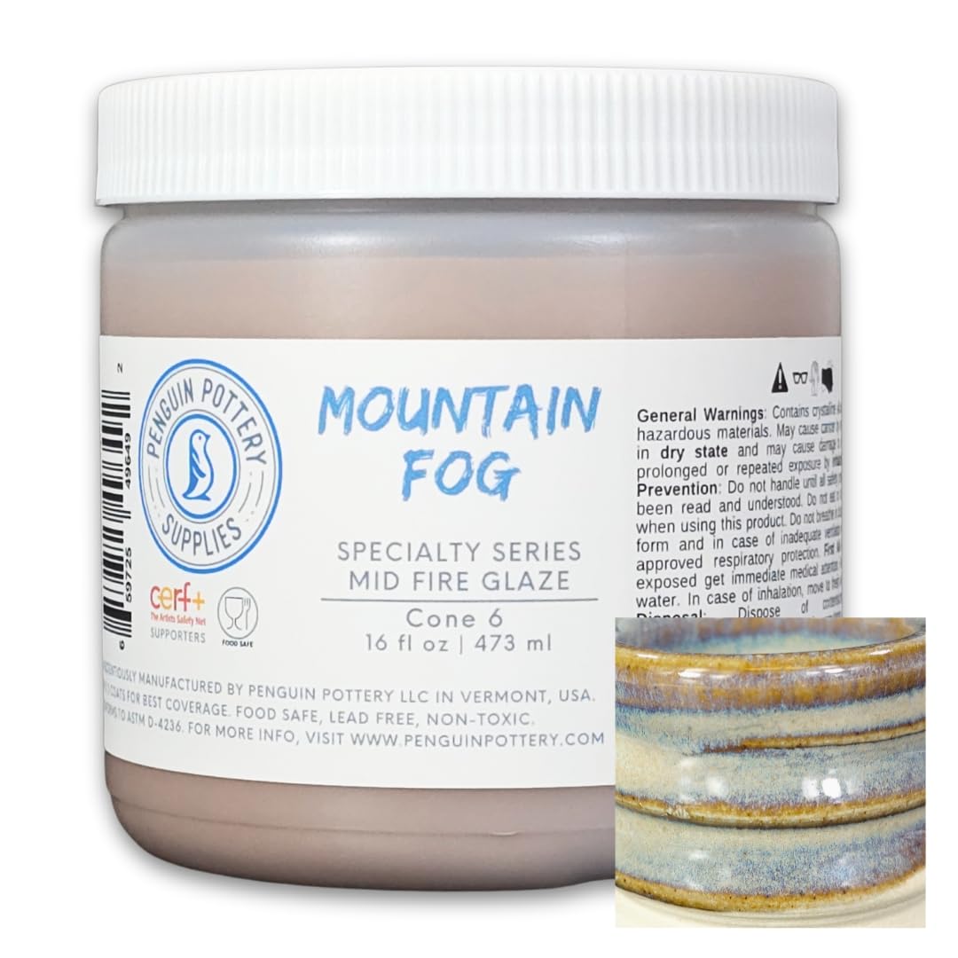 Penguin Pottery - Specialty Series - Mountain Fog. Mid Fire Glaze for Clay, Pottery Glaze, Cone 5 and Cone 6 - Ceramic Glaze for Pottery (1 Pint | 16 oz | 473 ml)
